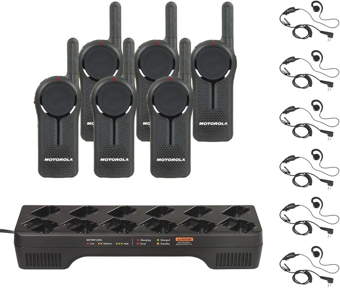 6 Motorola long range radios w/ earpiece mics